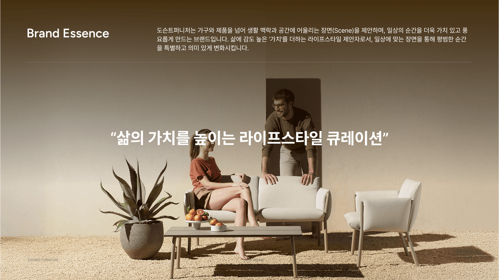 The color and typography system, derived from natural tones, delivers a refined and cohesive look across the brand. This BX system has been applied across a wide range of online and offline touchpoints, solidifying DOCENT FURNITURE’s identity as a brand rooted in premium lifestyle curation.