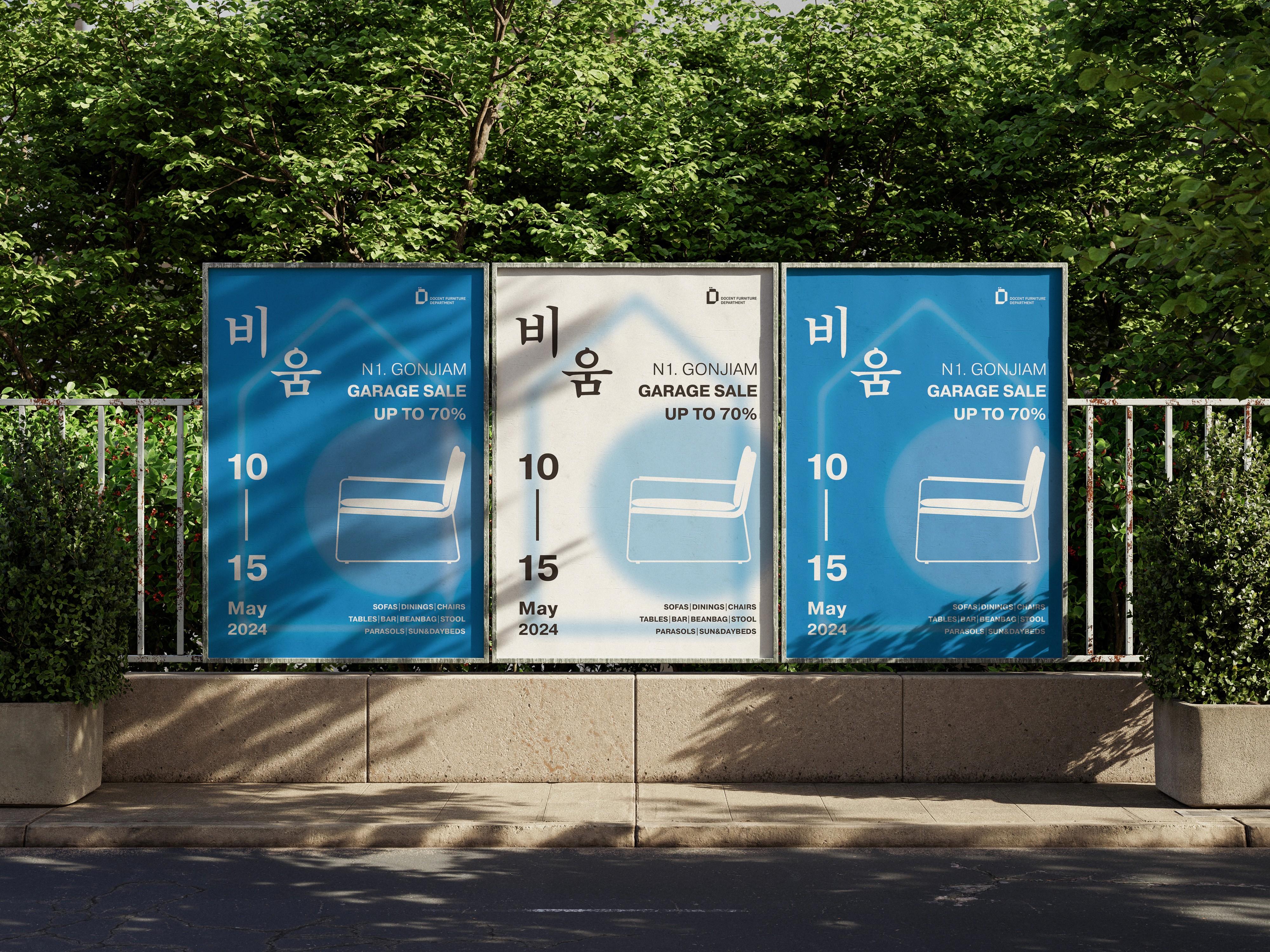 This project involved leading the overall planning and visual direction of DOCENT Furniture’s 2024 garage sale event, reinterpreting the conventional term “Garage Sale” through the Korean concept “비움 (Emptying).” By aligning the event with the brand’s emotional tone, the concept aimed to communicate the experience of clearing space and creating room for new beginnings.