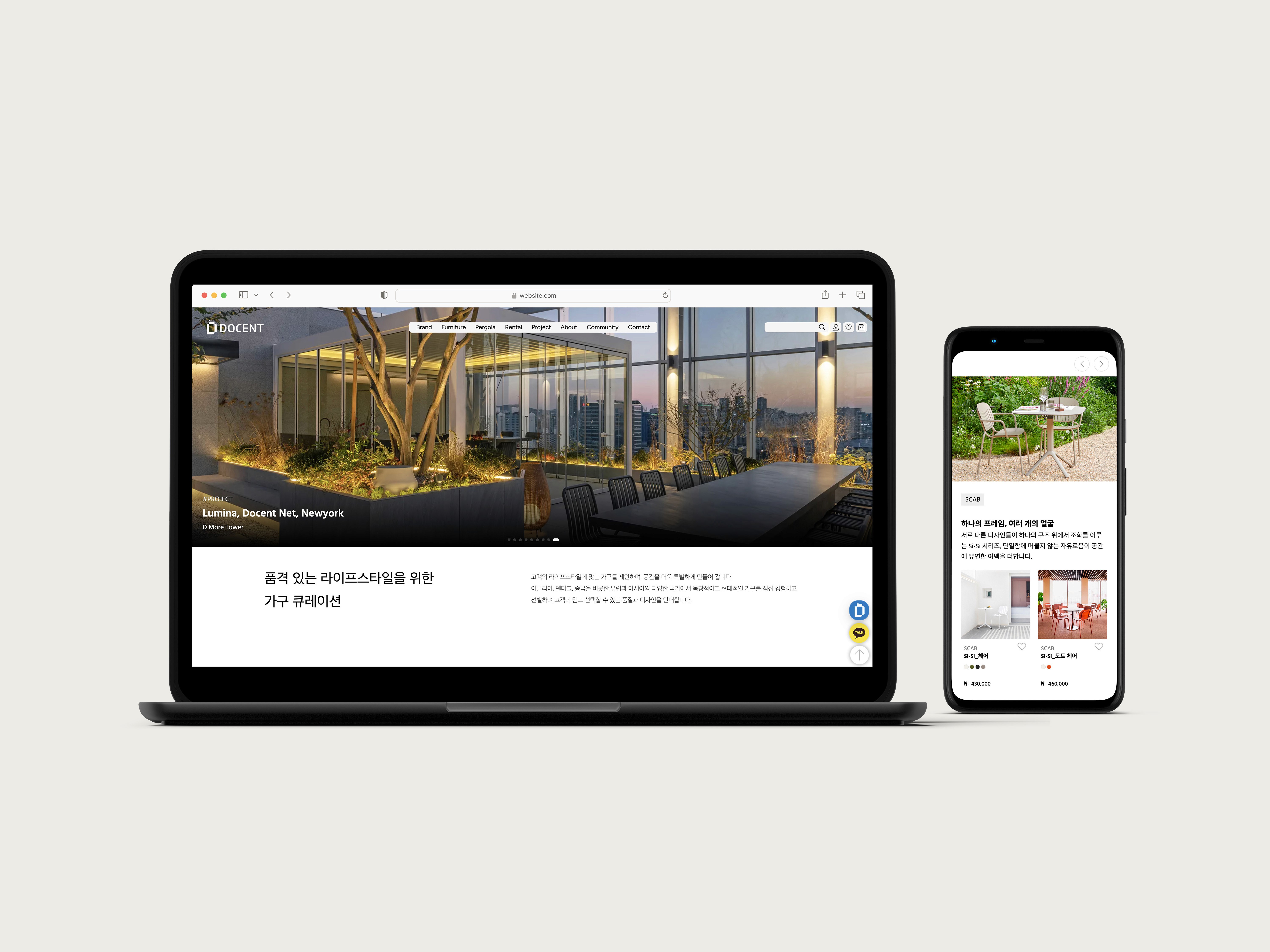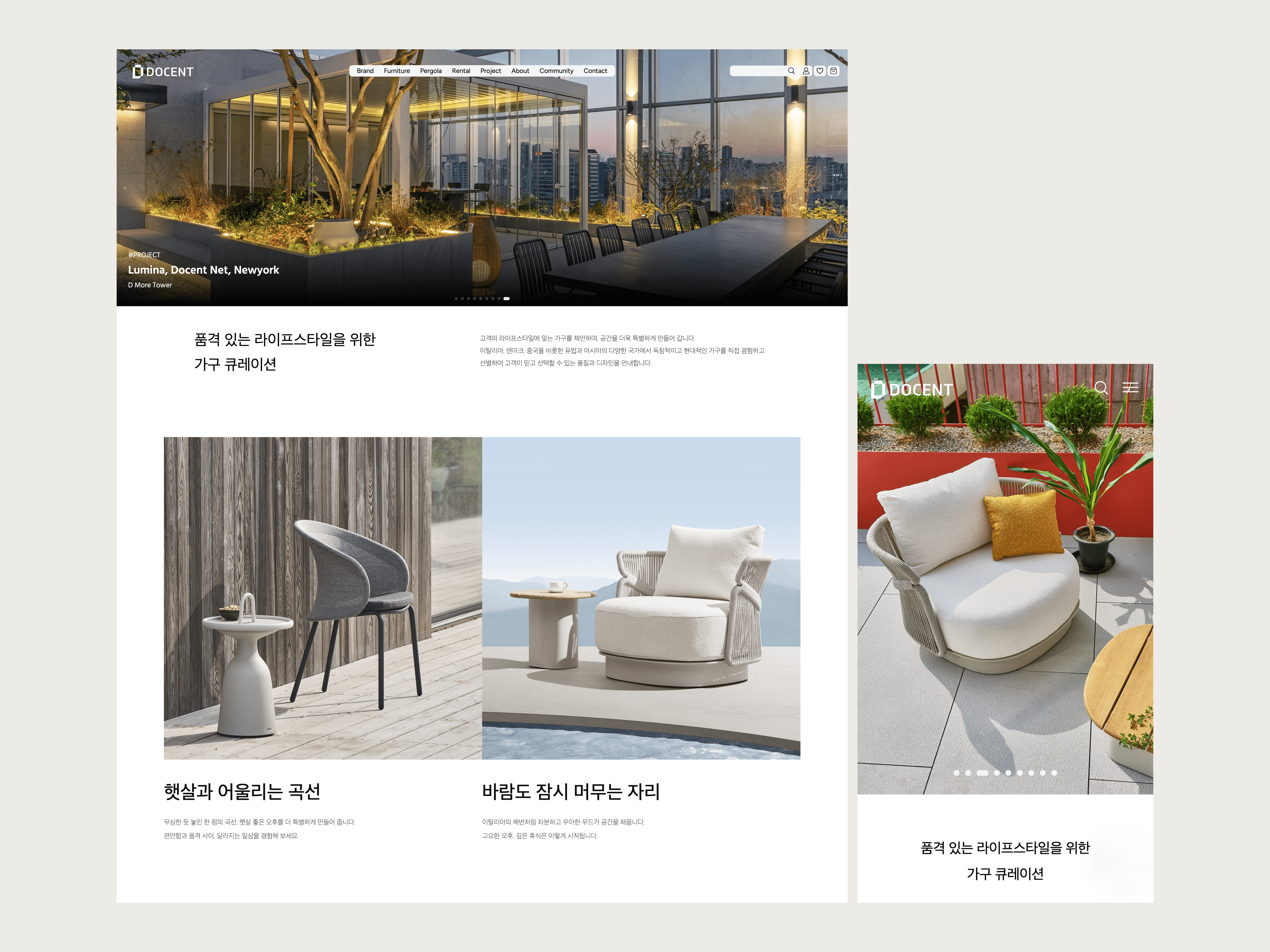 The official website renewal was developed to communicate DOCENT Furniture’s brand identity consistently across its digital platform. I led the overall web design direction and content structure, shaping layouts, imagery, and key copy to reflect the brand’s lifestyle-oriented aesthetic. The visual approach highlights both the atmosphere of DOCENT’s spaces and the distinct characteristics of its furniture.