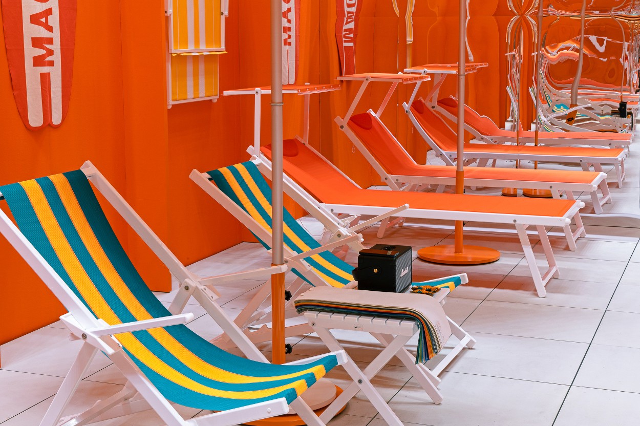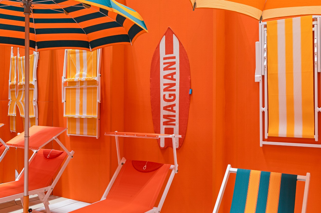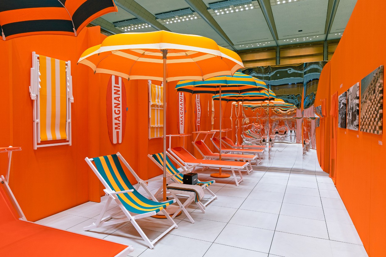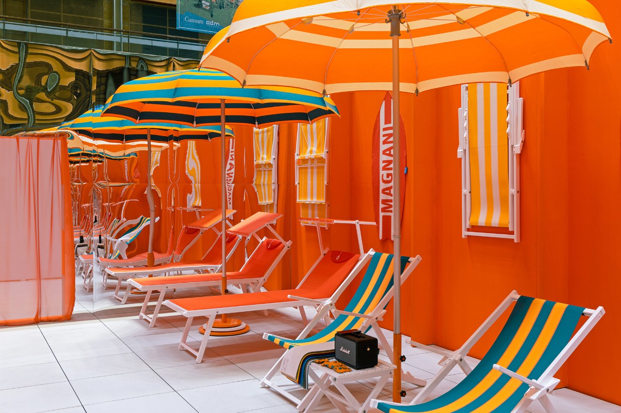 For MAGNANI’s first official launch in Korea at the 2023 Hotel Fair, I designed an exhibition space that highlighted the brand’s signature identity. Using MAGNANI’s bold orange color and stripe pattern, the booth delivered a striking visual experience, and I oversaw the entire process from spatial direction and exhibition planning to event operations and printed materials. I also created an AI-generated “Parasol” poster series, connecting the physical installation with a digital experience.