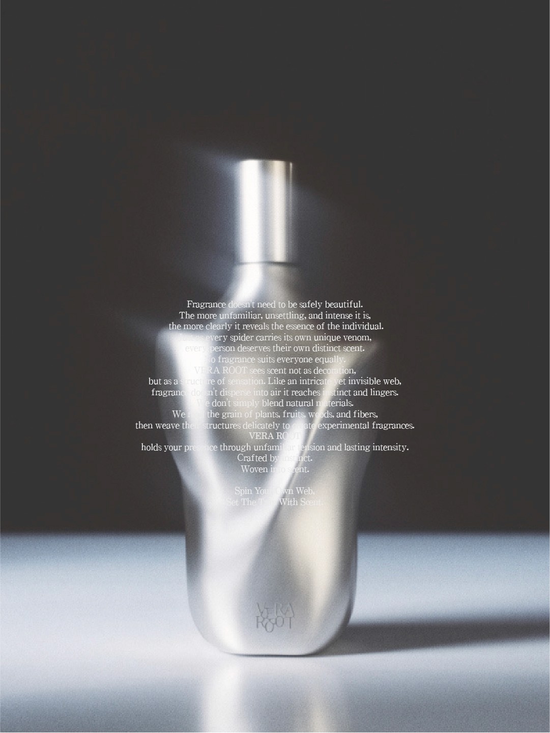 Rather than creating scents that suit everyone, we set out to craft fragrances that feel unfamiliar, intense, and deeply personal. Just as each spider possesses its own venom and web, we believe every person carries a scent that is uniquely their own.